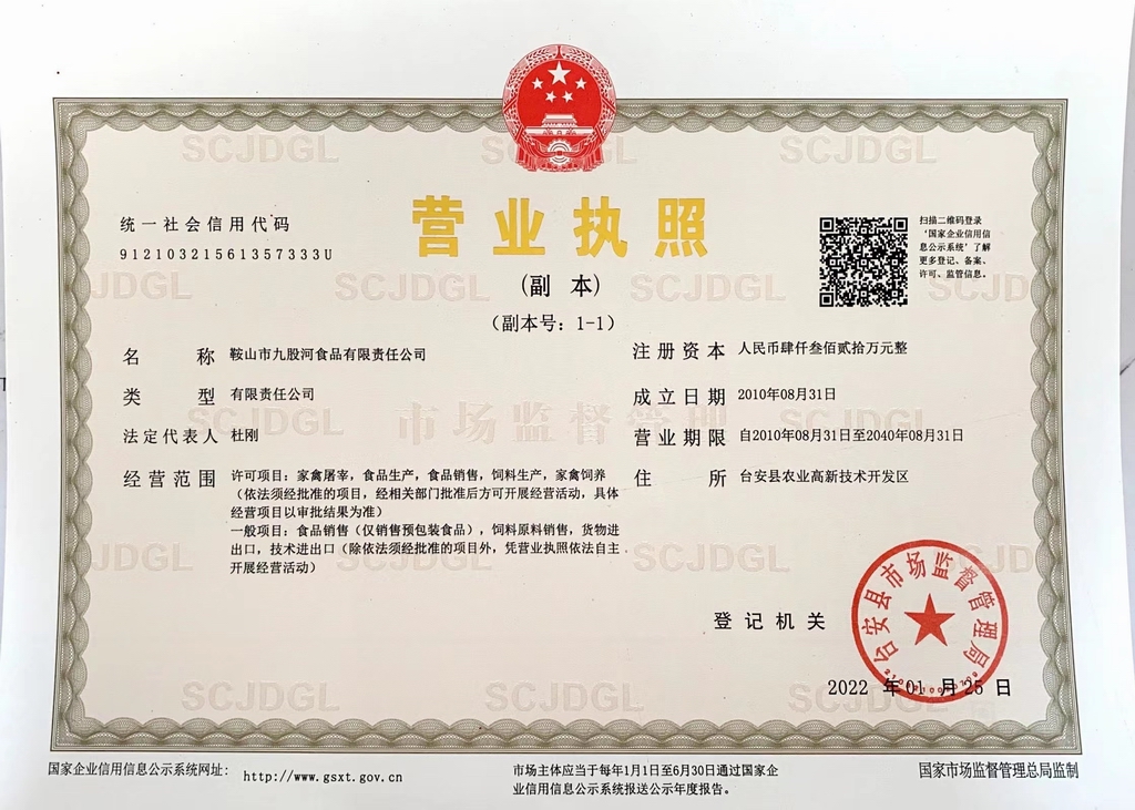 1997年丨九股河誕生于遼寧臺(tái)安,成立臺(tái)安縣九股河農(nóng)業(yè)發(fā)展有限公司2003年丨九股河走進(jìn)錦州市,在凌海成立凌海九股河食品有限公司2008年丨成立凌海九股河飼料有限公司2010年丨九股河與禾豐合作后,成立鞍山市九股河食品有限責(zé)任公司,從此,禾豐九股河走進(jìn)了高速發(fā)展之路2011年丨繼續(xù)在遼西闊步,成立葫蘆島九股河食品有限公司同年,臺(tái)安縣九股河農(nóng)業(yè)發(fā)展有限公司養(yǎng)殖部成立,按下規(guī)?;\養(yǎng)小區(qū)建設(shè)的快進(jìn)鍵2